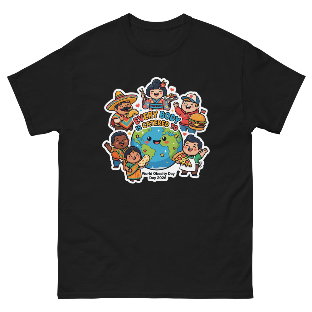 Show your support for World Obesity Day with this fun and vibrant tee! Perfect for spreading awareness while staying stylish.