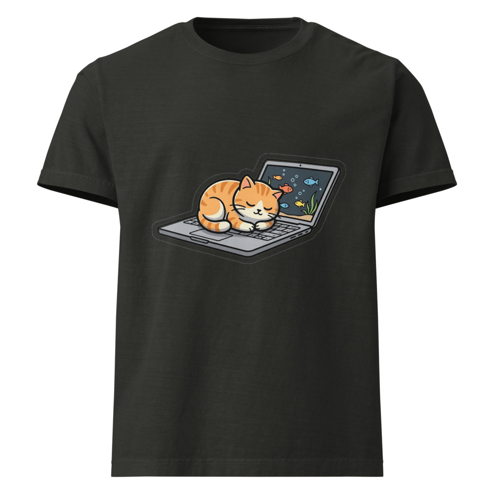 For the cat owner who knows the true purpose of a laptop. Kawaii tabby sleeping on your keyboard while fish swim on screen. Every remote worker's spirit animal.